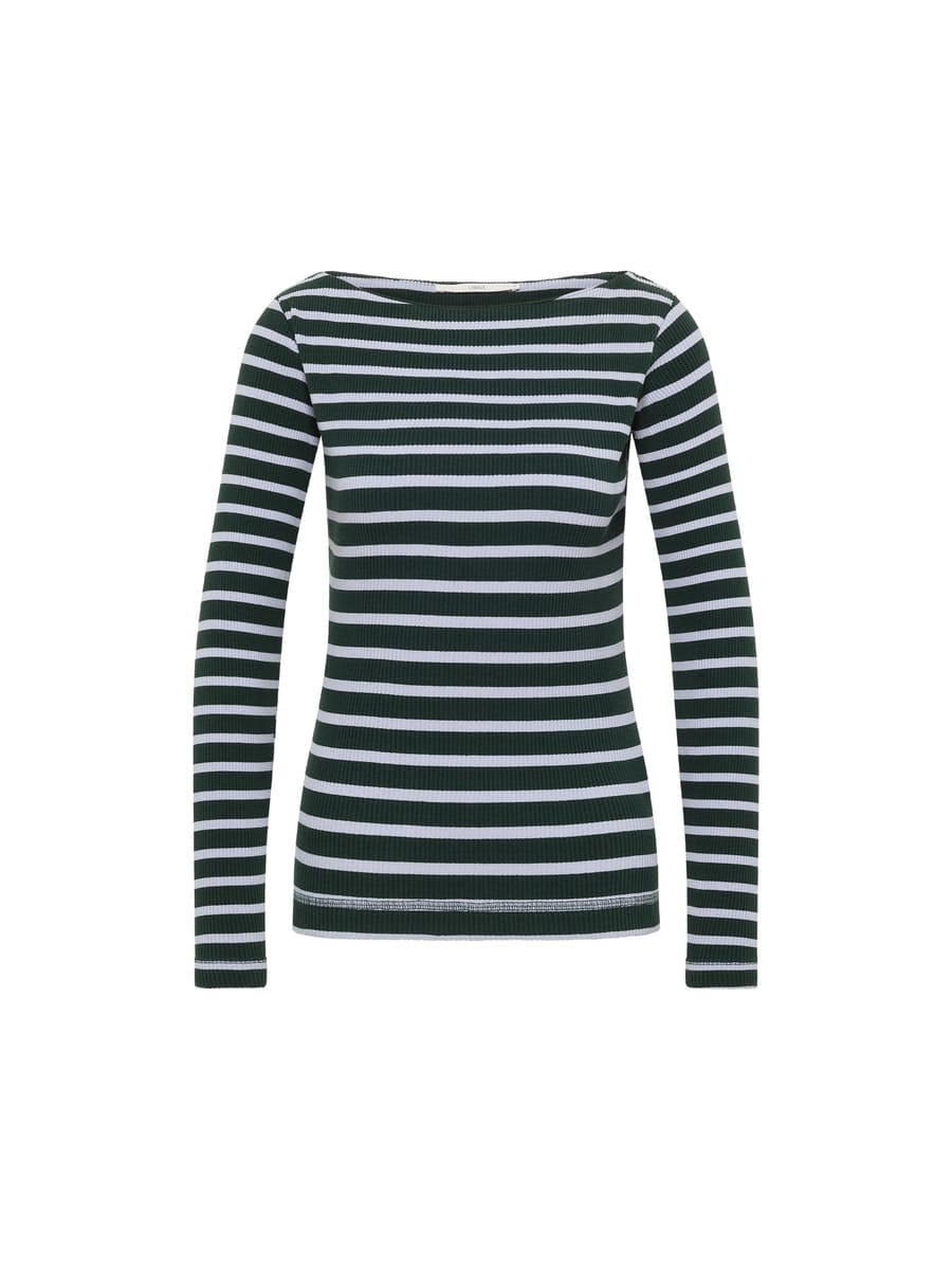 Streifen-U-Bootshirt GOTS - lupine/forest